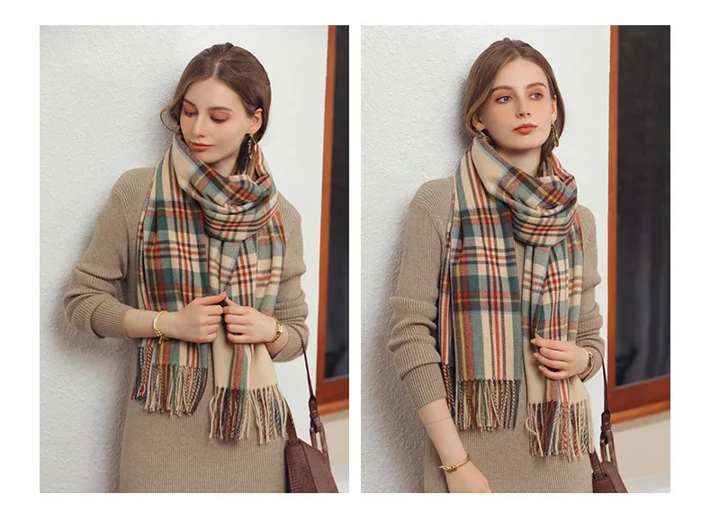 Écharpe femme tartan : élégance en beige pour l’hiver
