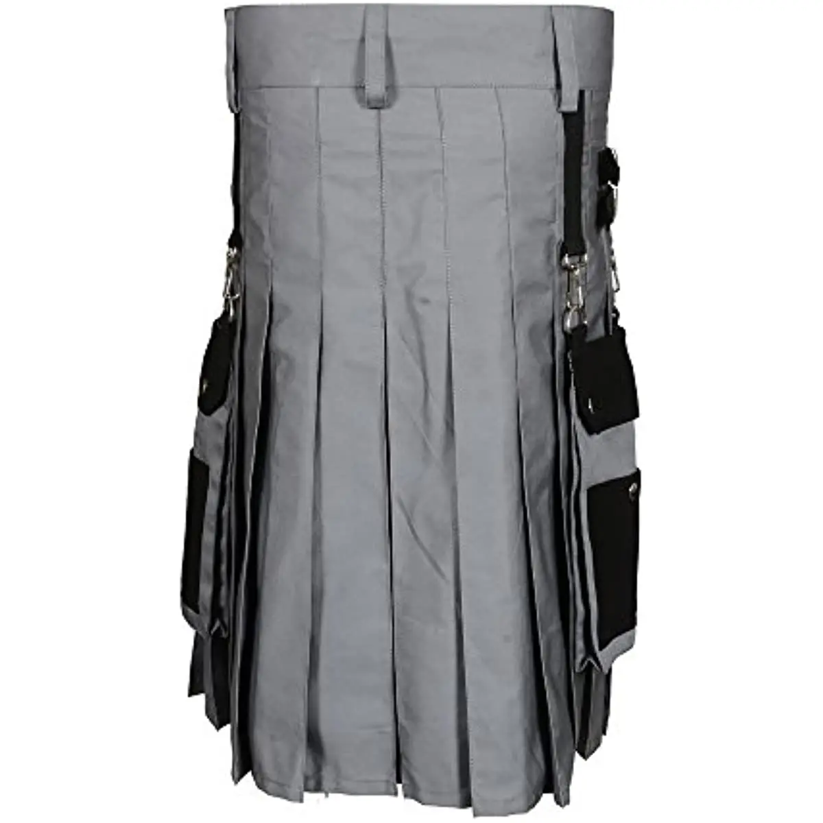 Le Kilt Travail se distingue par sa coupe courte, idéale pour un confort optimal. Son design bicolore noir et gris ajoute une touche de modernité à ce vêtement traditionnel. Ce kilt est plissé, offrant ainsi une grande liberté de mouvement tout en conservant une allure soignée et structurée. Ce modèle s’accorde parfaitement avec d’autres pièces comme le kilt de travail pour homme pour un style assuré.