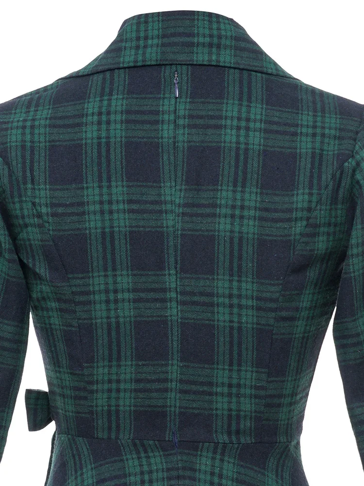 Pour un look d’automne impressionnant, choisissez des bottines en cuir et un trench-coat neutre. Pour une tenue de soirée plus festive, optez pour des bijoux dorés et un sac à main structuré qui mettront en valeur l’élégance rétro de la robe tartan.